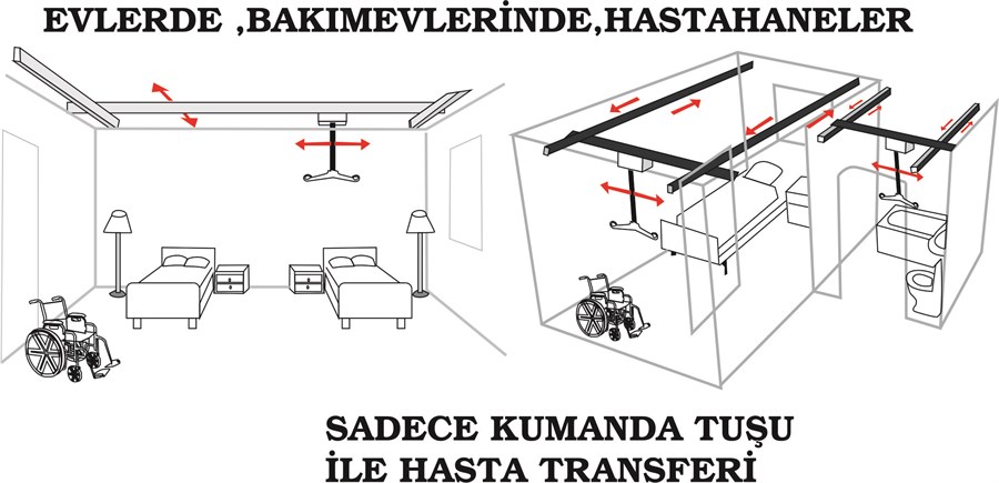 GÜÇ HARCAMADAN BİR TEK TUŞLA HASTAYI KALDIRABİLİR MEKAN İÇİNDE DOLAŞTIRABİLİRSİNİZ.